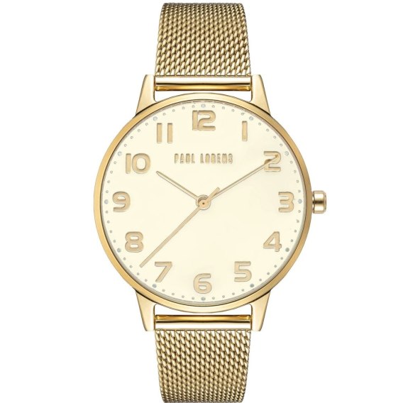 Zegarek minimalistyczny Paul Lorens PL11715B2-4D1 w złotej kolorystyce to idealny wybór dla kobiet, które cenią sobie luksus i elegancję w najczystszej formie. Design zegarka pozbawiony jest zbędnych udziwnień - tylko to, co istotne: złote wskazówki oraz precyzyjny sekundnik z wdziękiem sunące po lśniącej, złotej tarczy.